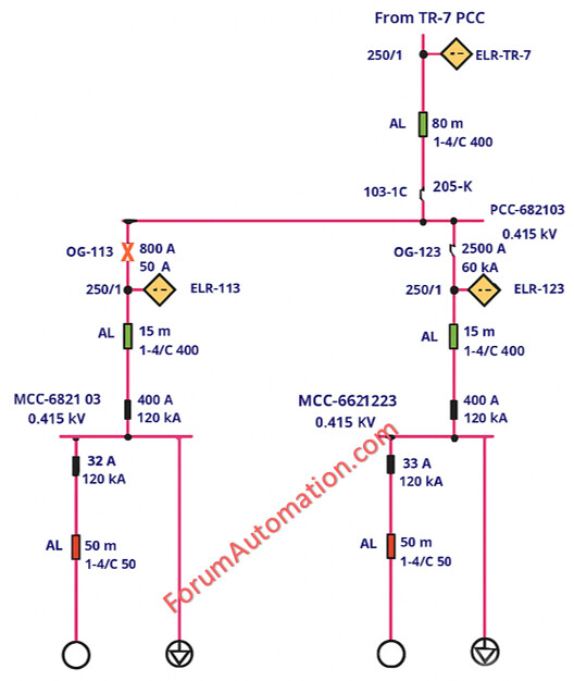 In this case, the main PCC outbound ELR will start immediately. As a result, the MCC outgoing motor 32 A fuse will require longer to run due to an earth fault. Any malfunction in outgoing motor feeder causes total power loss for all MCC parts.
