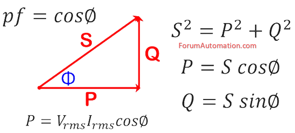 which are related to each other through the power triangle.