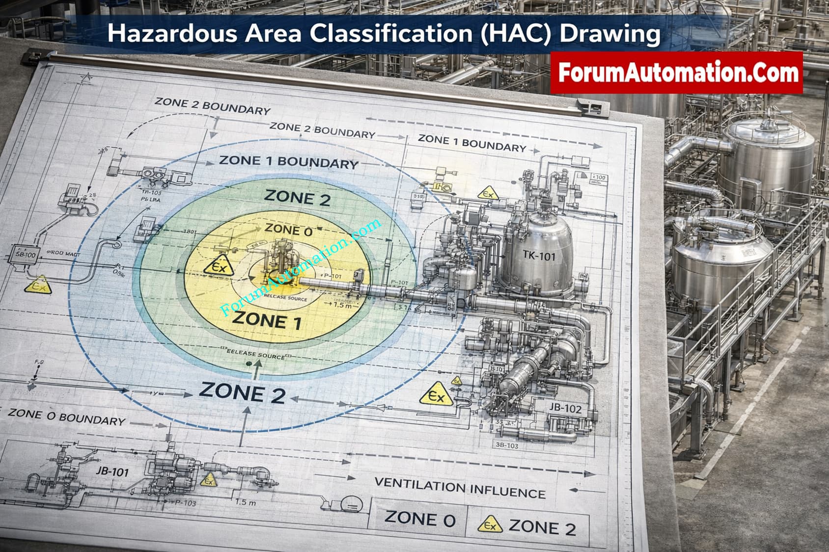 A Hazardous Area Classification (HAC) drawing is a comprehensive engineering document that shows where hazardous areas are in a facility and how big they are. This helps engineers choose safe equipment and stay away from fire hazards.