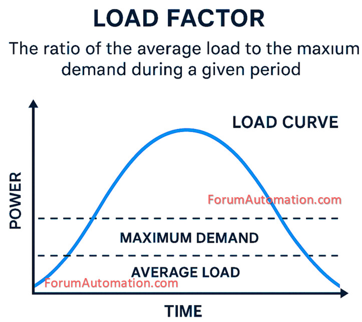 The Load Factor is the ratio of average load to maximum demand during a specific time period (often one day, month or year).