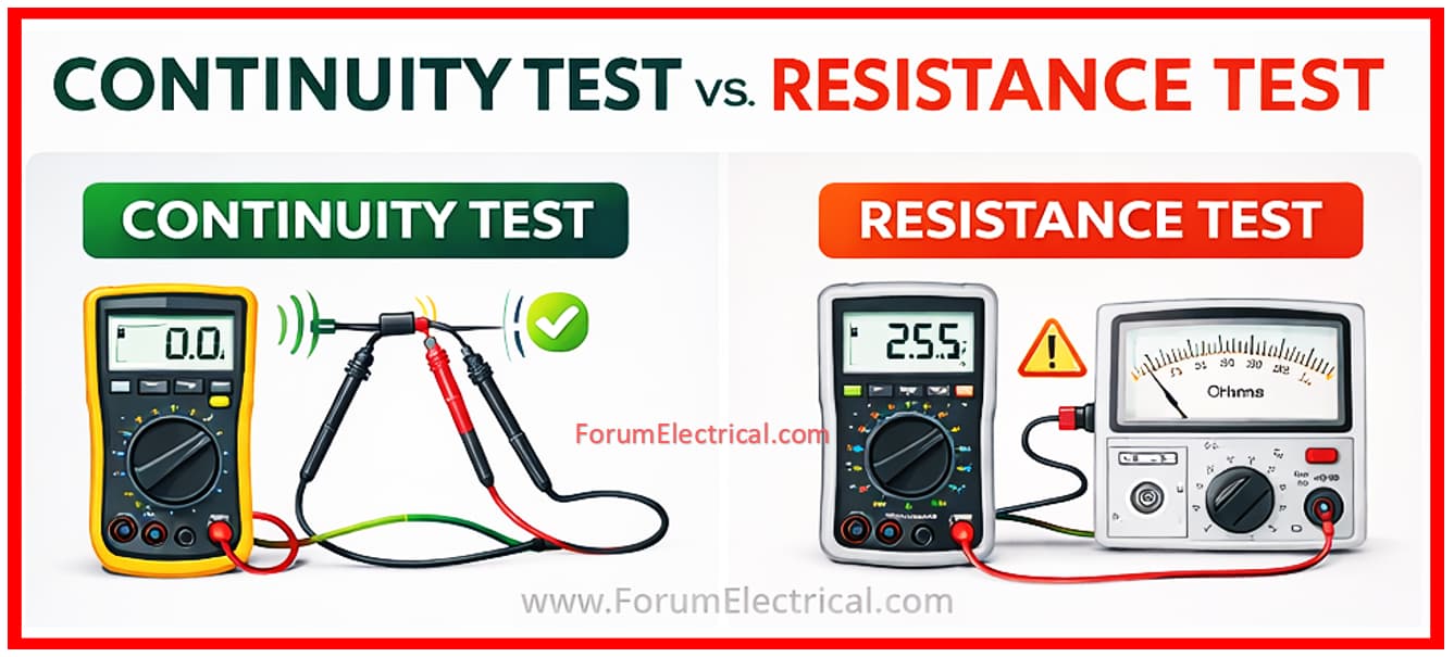 Here is a clear comparison table between Continuity Test and Resistance Test utilized in electrical testing: