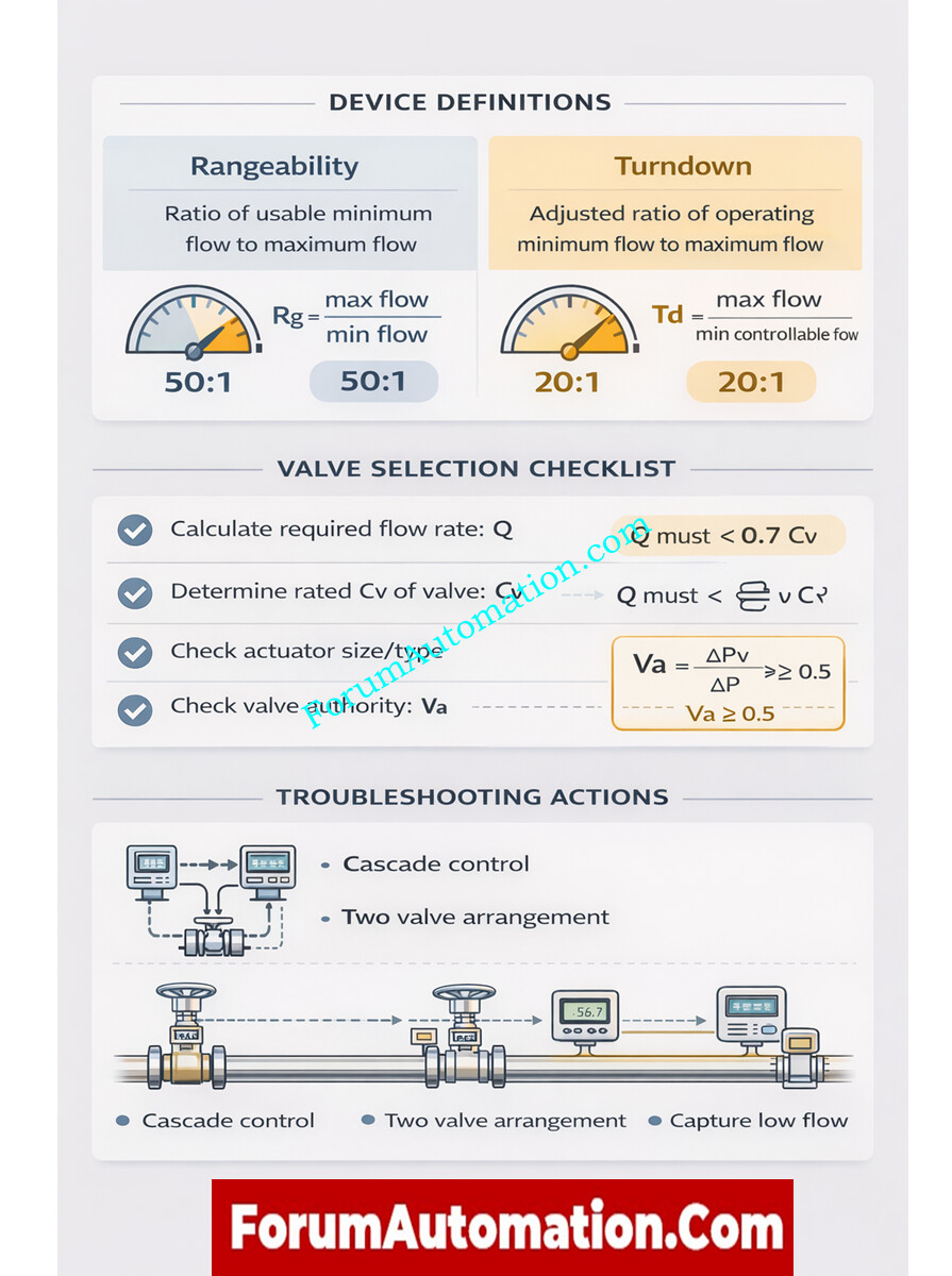 Rangeability vs Turndown Ratio selection and troubleshooting checklist