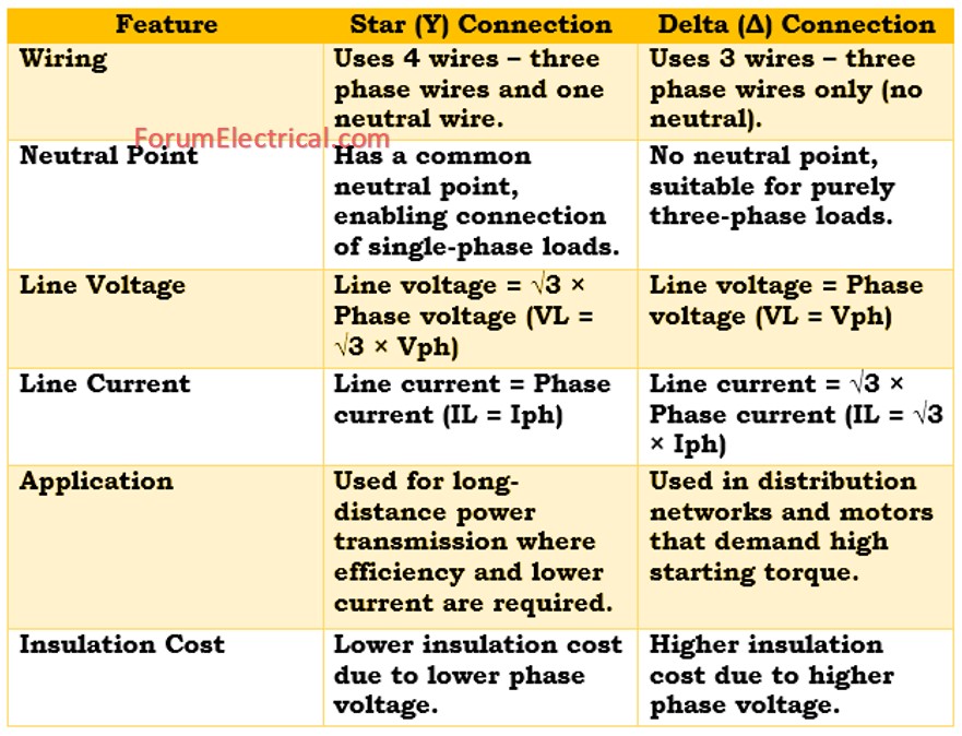 Delta is a parallel circuit where line voltage and phase voltage are equal. Star is a series circuit where line current and phase current are equal. Delta connections are used in parallel…33kv lines…ie high tension… while star connections are step down…230v…ie…low tension. Star provided low torque while Delta provides high torque.