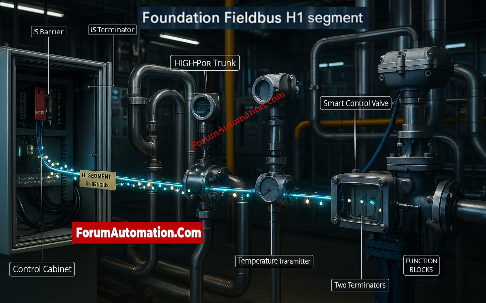 The Foundation Fieldbus H1 protocol is a digital, two-way communication standard used in process automation to connect field instruments like transmitters, actuators, and control valves with control systems. It works at 31.25 kbit/s and lets up to 32 devices talk to each other over a single twisted-pair or fiber-optic cable. This cable can also carry electricity to the field sensors. Compared to older 4–20 mA systems, where each instrument needed its own cabling, this makes wiring a lot simpler.