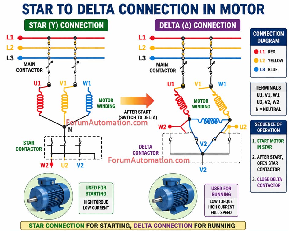 The initial current jerk would draw current too much so that’s why we use star at the start when it starts smootly then it can run in the delta. Initially to overcome the high starting torque we are using star and after that delta.