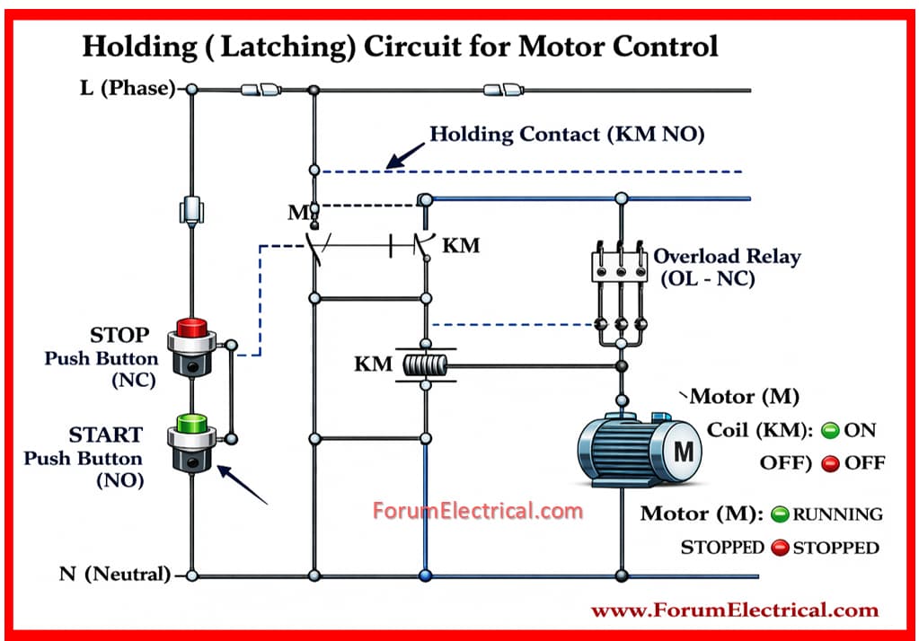 For motor control, latching (or) holding is often required to keep the motor in a certain position or to stop inappropriate movement. Here are several reasons for this: