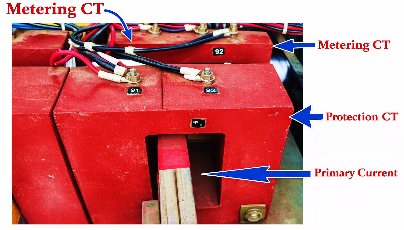 Even if 2 current transformers (CTs) possess the same primary-to-secondary ratio (for example: 400/5 A), they can act extremely differently since protection CTs and metering CTs are designed for completely different applications.