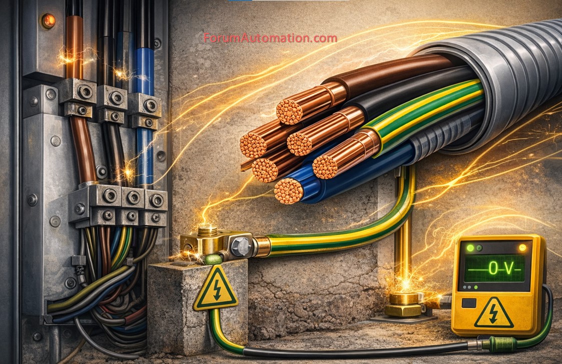 Running a ground (earth) cable beside each phase cable is an important safety & performance procedure in electrical systems.